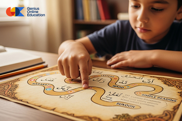 📩ابدأ الآن مع Genius Online لقياس مستوى طفلك في القاعدة النورانية وتحسين مهاراته خطوة بخطوة بأسلوب ممتع وتفاعلي